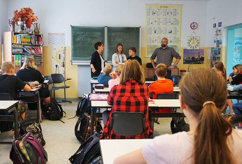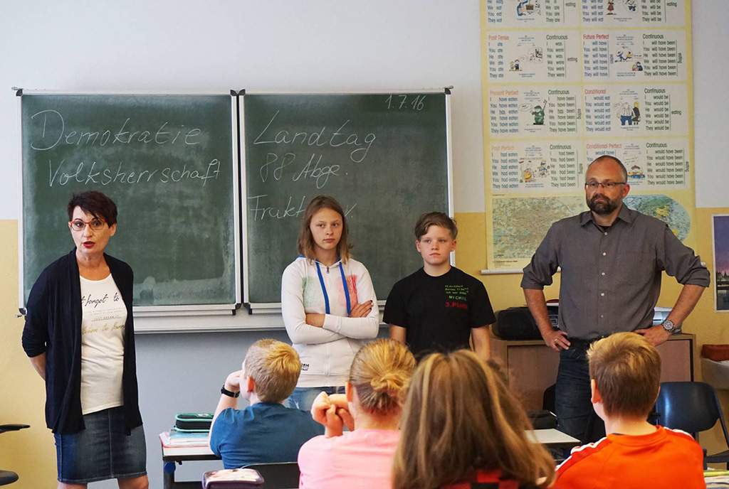 Im Namen der beiden Abgeordneten Frau Koß und Herrn Kurth bedanke ich mich für den schönen gemeinsamen Termin mit Ihrer 6. Klasse. Die Klasse war hervorragend vorbereitet, interessiert bei der Sache und es hat uns Freude gemacht, das Thema Demokratie dort mit den Kindern zu besprechen.