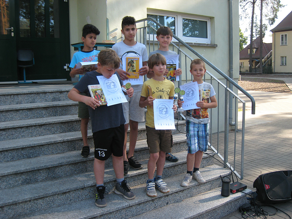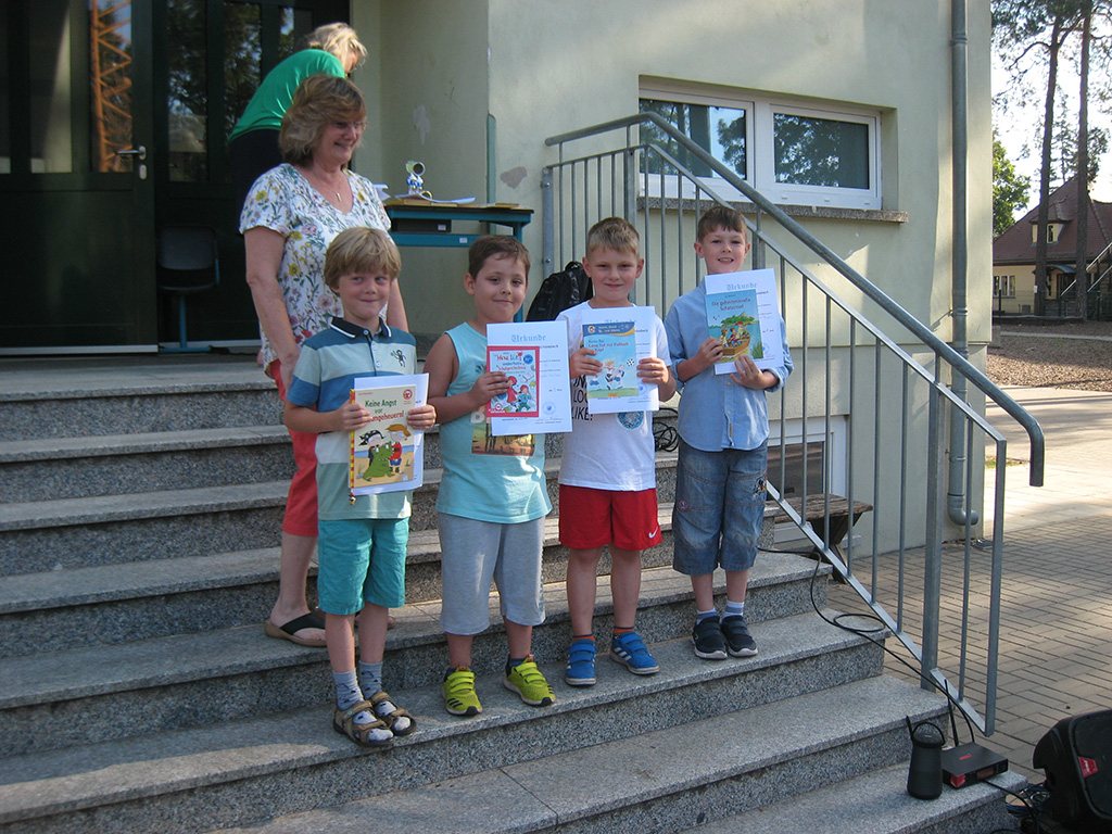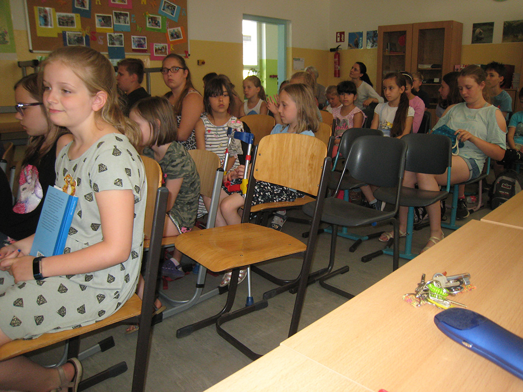 Parallel dazu wetteiferten die Vorleser im Vorlesewettbewerb um die besten Plätze. Auch die Schulanfänger aus der Kita Borstel nutzten den Vormittag, um sich etwas vorlesen zu lassen. Im nächsten Schuljahr sind ja dann auch 2 aus ihrer Mitte dabei. Auf Klassenstufe 1/2 kämpften nur Jungen gegeneinander. Sieger wurde Sebastian Friedrich aus Klasse 2. In Klasse ¾ und Klasse 5/6 waren es hingegen reine Mädchenwettkämpfe. So gewann in der Altersstufe 3/4 Finja Morgenroth. Ihr Buch brachte viele zum Lachen und war eine tolle Leseanregung für die Ferien. Schwer war es für die Jury besonders in Klasse 5/6 zu entscheiden, wer seine Sache am besten gemacht hatte. Am Ende setzte sich aber Sophie Wunderlich aus Klasse 5 klar durch und gewann den Wettbewerb. Viele nahmen sicher eine Leseanregung mit und freuen sich schon auf das nächste Jahr.