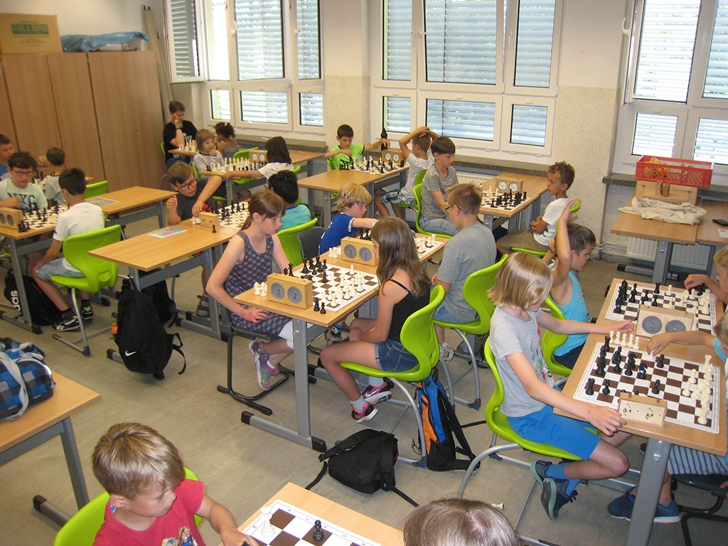 Am Dienstag spielten 32 Schüler um die 14. Schulschachmeisterschaft, so viele wie noch in keinem der 13 vorhergehenden Jahre. Es kam  zu vielen spannenden Spielen, bei denen nicht immer der Favorit gewann und die Sechstklässler, die sich einen einfachen Sieg erhofft hatten, ganz schön kämpfen mussten. Schulschachmeister wurde am Ende Juri Haberland aus Klasse 4.