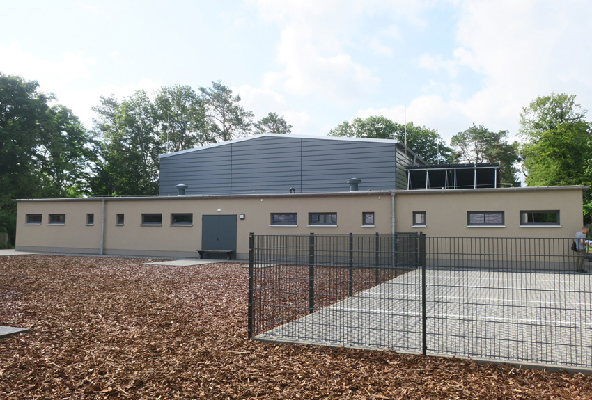 Auf dem Schulgelände in der Berliner Straße 24 sind eine neue 465 Quadratmeter große Ein-Feld-Halle mit Wasch-, Dusch- und Umkleideräumen, Toiletten sowie einem Mehrzweckraum entstanden. Außerdem wurden die Außenanlagen neugestaltet und ein Zaun gesetzt. Berücksichtigt wurden beim Bau auch ökologische Aspekte. So wird beispielsweise sämtliches Warmwasser aus Solarenergie erzeugt.