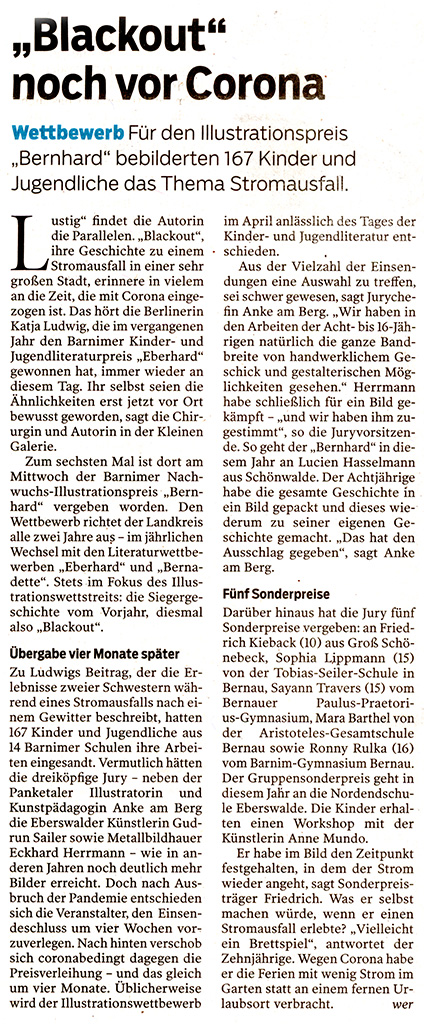 Im letzten Schuljahr nahmen die Klassen 4 bis 6 am Illustrationswettbewerb der Kinder- und Jugendliteratur des Landkreises Barnim teil.