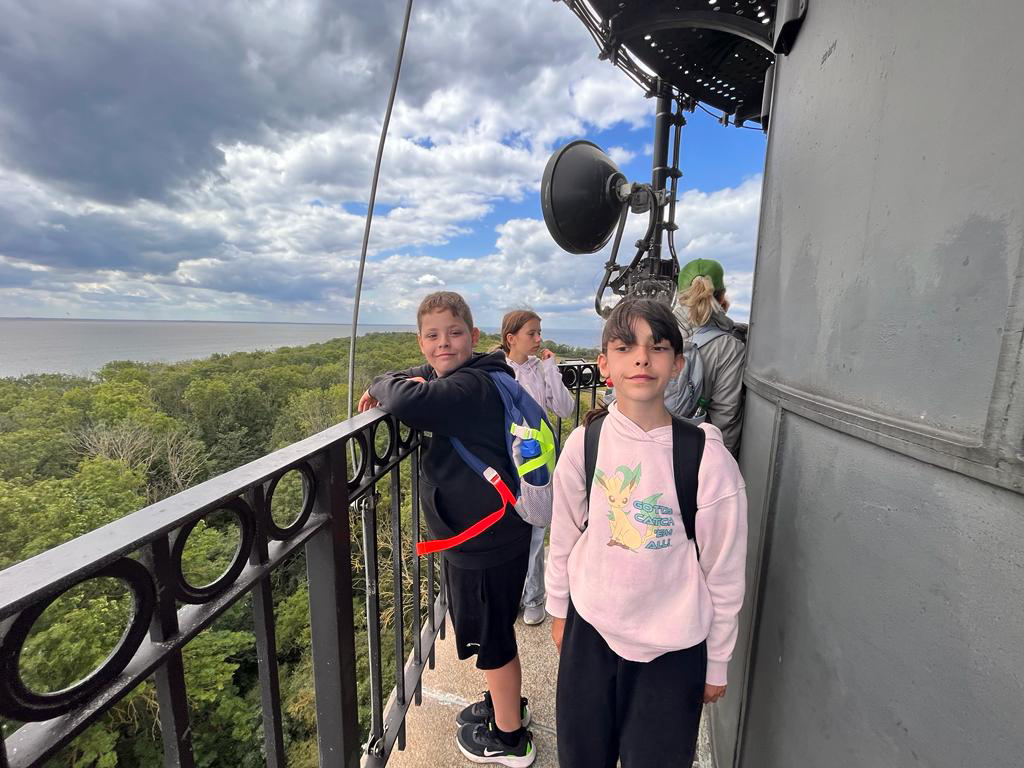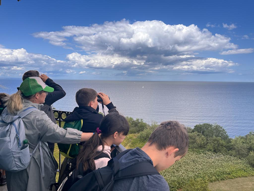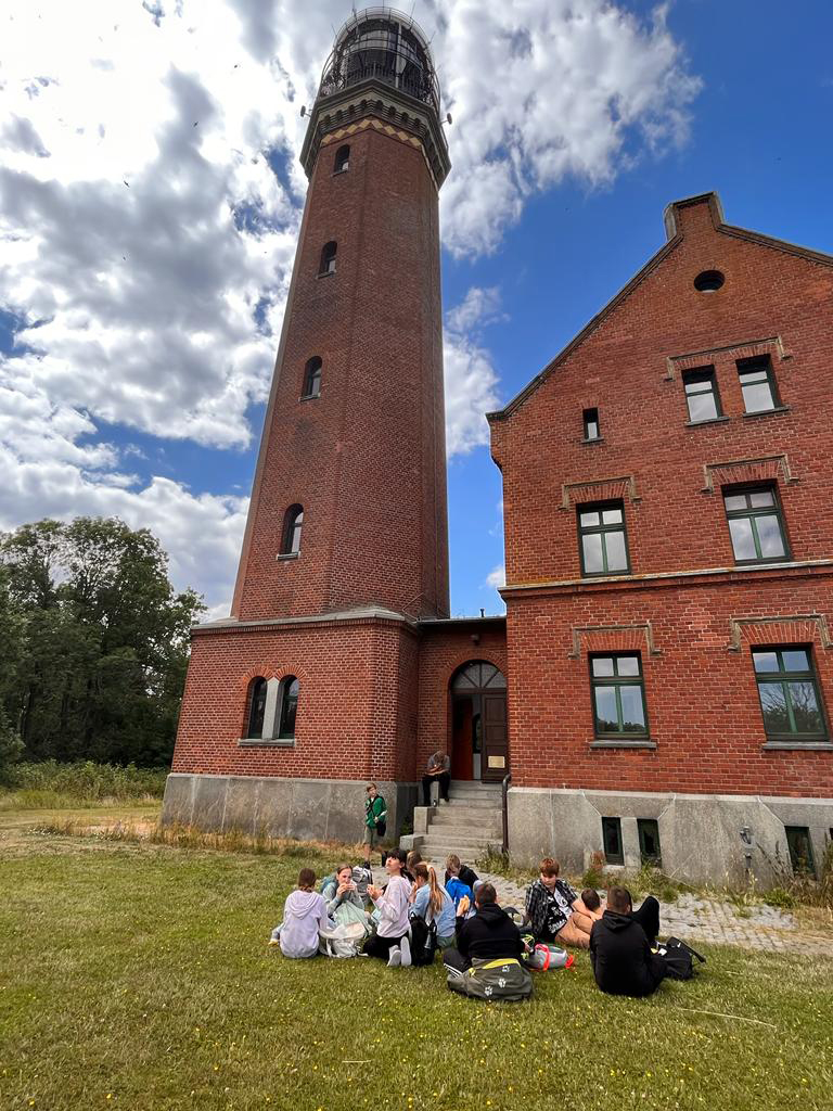 Am Donnerstag fuhren wir mit der Usedomer Bäderbahn nach Peenemünde und bestiegen am Hafen das Schiff „Seeadler“, das uns nach 90 minütiger Fahrt zur Insel Oie brachte. Hier hat die Seenotrettung eine Station und der Verein Jordsand kümmert sich um die Beobachtung, Zählung und Beringung der Zugvögel, die auf der Oie eine Pause einlegen. Auf der Wanderung über die Insel zeigten uns die Guides Caro und Jonas eine Bienenbelegstation, Nistkästen für Fledermäuse und wir konnten an der Steilküste sogar Kegelrobben beobachten. Zum Schluss bestiegen wir den Leuchtturm der Oie und genossen einen herrlichen Rundumausblick auf die Ostsee, Usedom und Rügen.