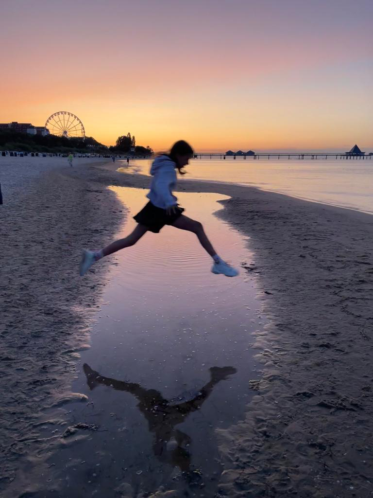 Nach überfüllten und verpassten Zügen kamen wir am späten Montag Nachmittag in der Jugendherberge in Heringsdorf an und waren, zu unserer großen Freude, in der alten Villa, die direkt an der Strandpromenade liegt, untergebracht. Nachdem wir unsere Zimmer bezogen und Abendbrot gegessen hatten, ging es zum Strand und wir genossen den malerischen Sonnenuntergang.