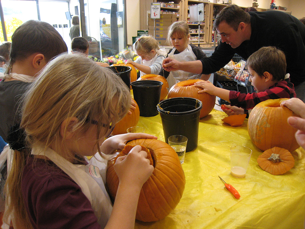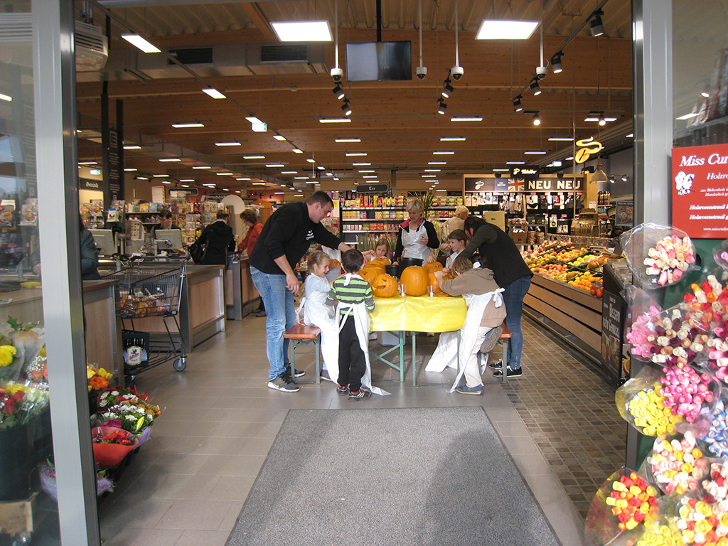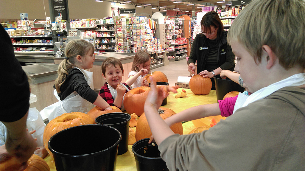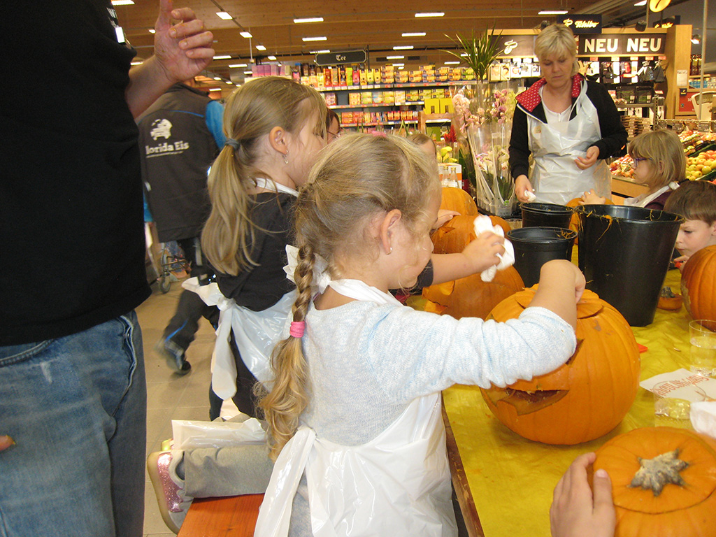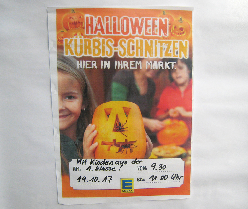 Die Kinder der ersten Klasse haben, mit tatkräftiger Unterstützung zweier EDEKA – Mitarbeiter, ihre eigenen Halloween-Kürbisse geschnitzt. Diese durften sie anschließend mit nach Hause nehmen. Es war ein schönes Erlebnis für alle Beteiligten.
