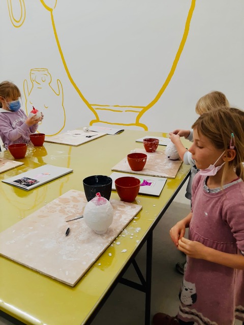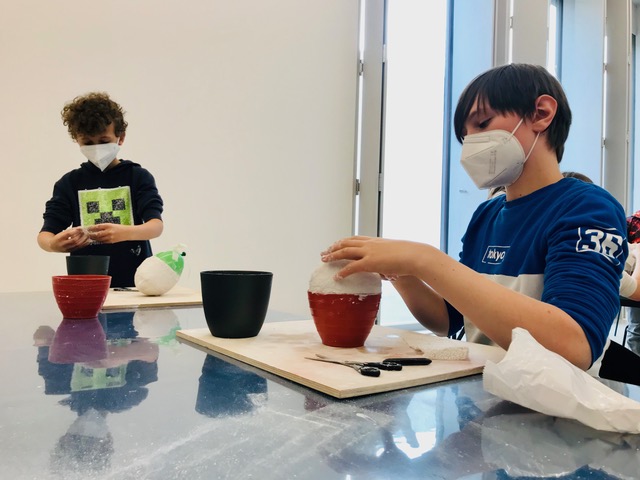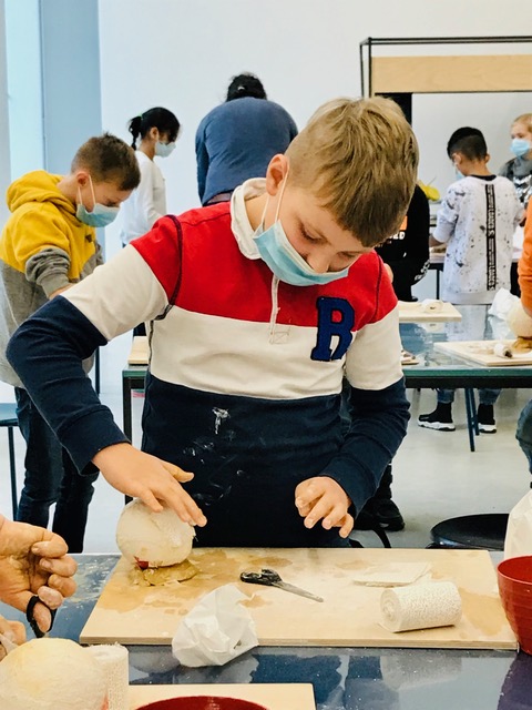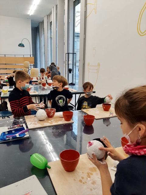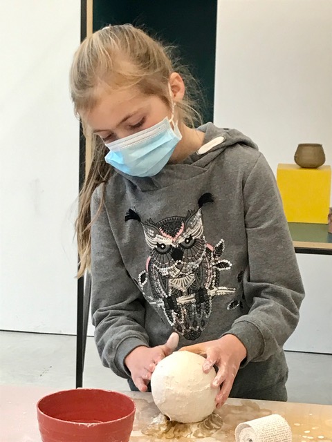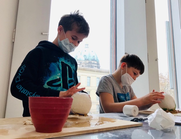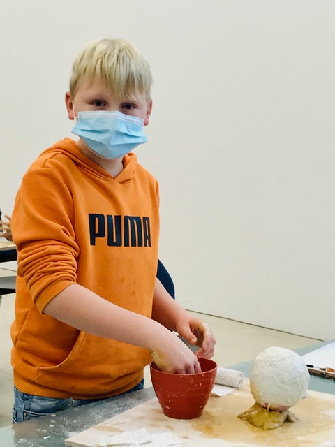Die Schülerinnen und Schüler der Klassen 1, 4, 5 und 6 durften nach ihrem Museumsbesuch im anliegenden Kulturzentrum Haus Bastian eigene Gefäße aus Gipsbinden herstellen.