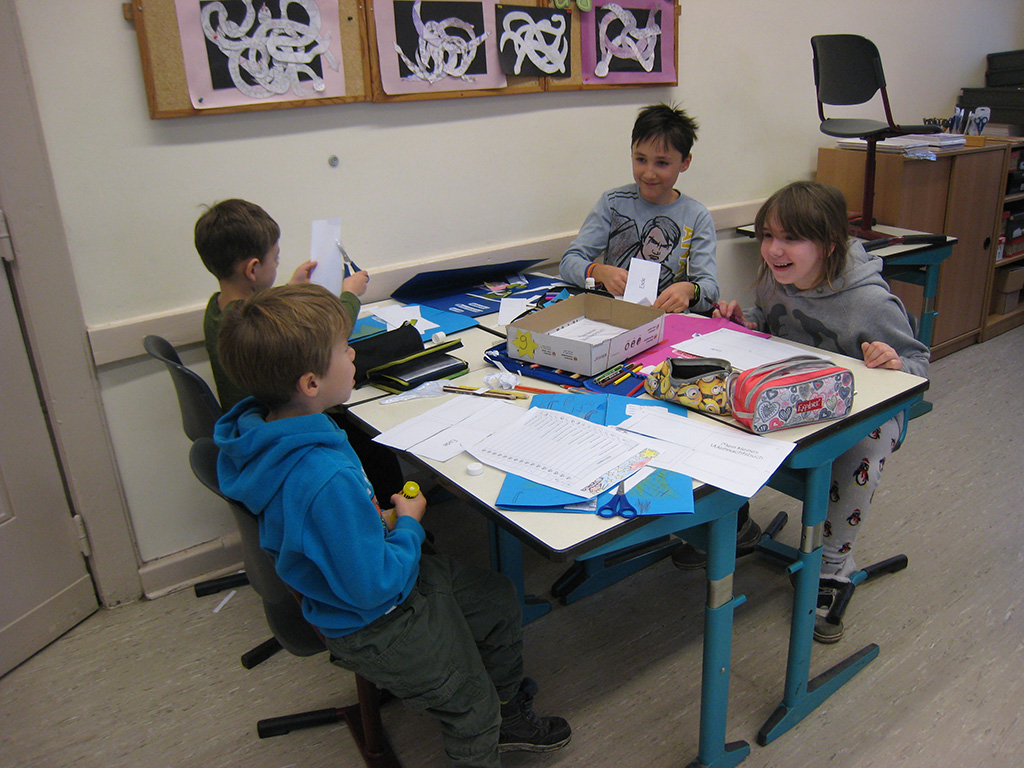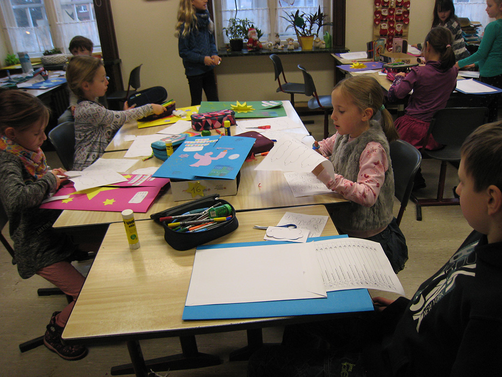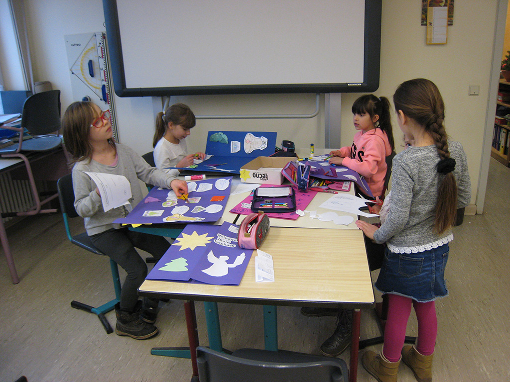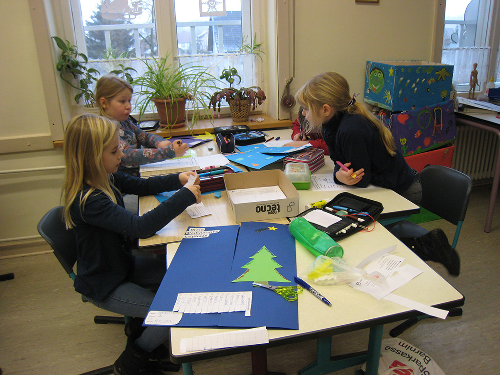 In Klasse 1,2 und 4 arbeitete jedes Kind vom 18.12. bis 20.12.2017 an seinem eigenen Lapbook. Am ersten Tag teilten wir uns zuerst in Gruppen ein und fingen mit der äußeren Gestaltung an. Später ging es dann an das Innere des Lapbooks. Hierzu gab viele verschiedene Aufgaben und jede Gruppe durfte selbst entscheiden, in welcher Reihenfolge sie die Aufgaben erfüllen wollte.