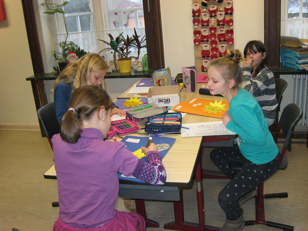 Am zweiten Tag arbeiteten wir weiter an der inneren Gestaltung unseres Lapbooks. Außerdem durfte jedes Kind an diesem Tag Plätzchen backen und verzieren. Hier wurden die Kinder wieder gruppenweise in die Küche des Hortes geschickt.