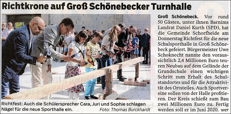 Richtfest neue Sporthalle MOZ vom 23.08.2019 MOZ vom 23.08.2019 Richtfest neue Sporthalle Richtfest neue Sporthalle Richtfest neue Sporthalle Richtfest neue Sporthalle Richtfest neue Sporthalle