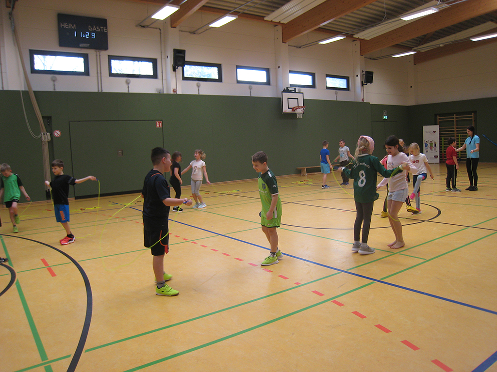 Am 07.02.2023 fand zum 2. Mal wieder ein Workshop in unserer 3. Klasse statt. Von 9.00 bis 12.00 Uhr hatten die Schüler und Schülerinnen die Möglichkeit, verschiedene Grundsprünge zu erlernen. Sie konnten Einzelsprünge, Partnersprünge, aber auch Sprünge im Team absolvieren. Zum Abschluss gab es für andere Klassen und die Kita eine kleine Vorführung.
