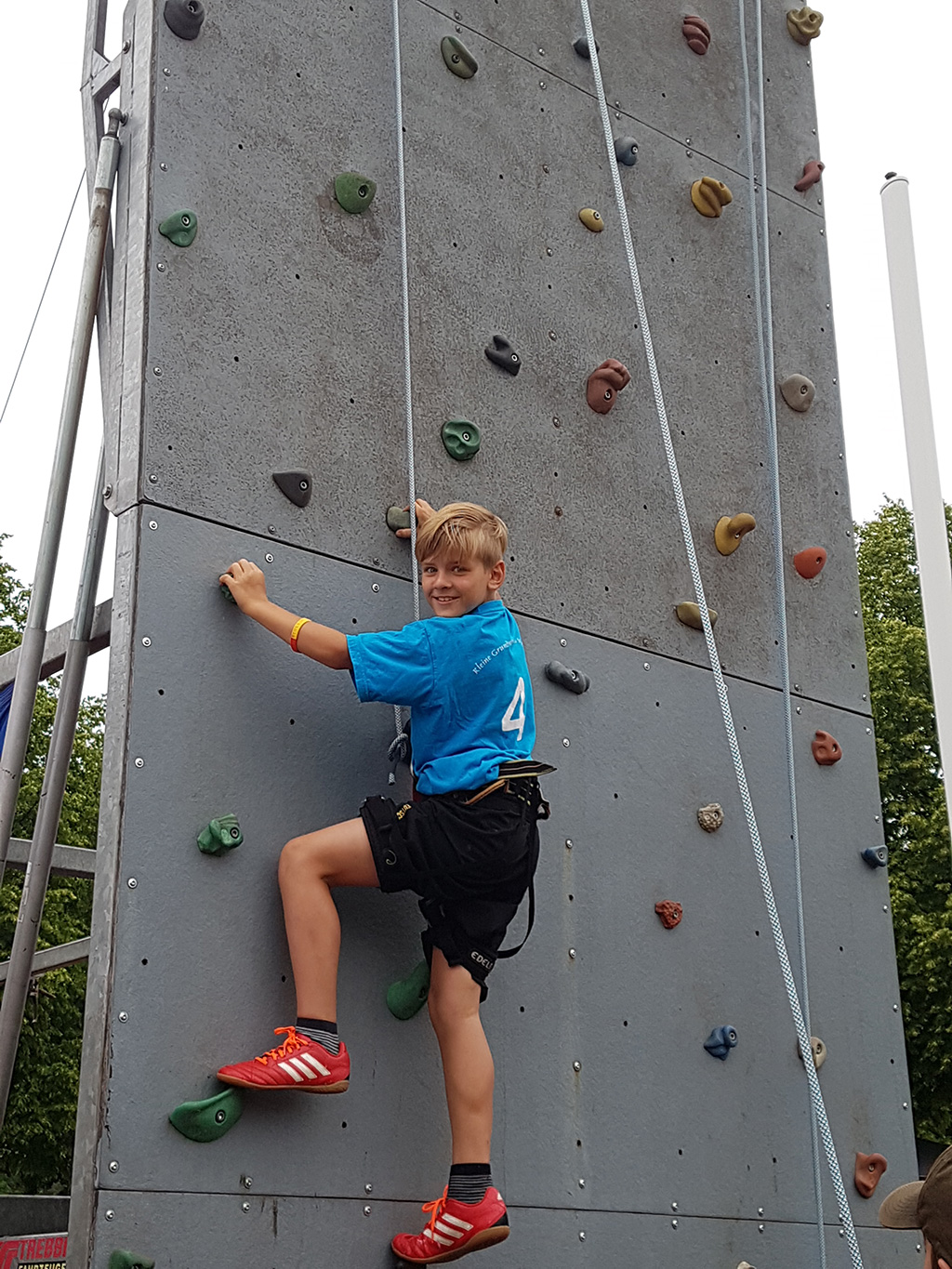 Bevor wir dann in unseren 3 Disziplinen antreten konnten, hatten wir eine spannende Erwärmung mit den berühmten Stars Miriam Holler, Frank Busemann und Gerd Schönfelder. Nachdem wir warm waren, ging es endlich los. Zuerst Weitsprung. Dann hatten wir eine längere Pause, in der wir die anderen Attraktionen ausprobieren konnten, z.B. eine riesige Kletterwand, Minitennis und Minigolf. Dann ging es zum Werfen und Laufen.
