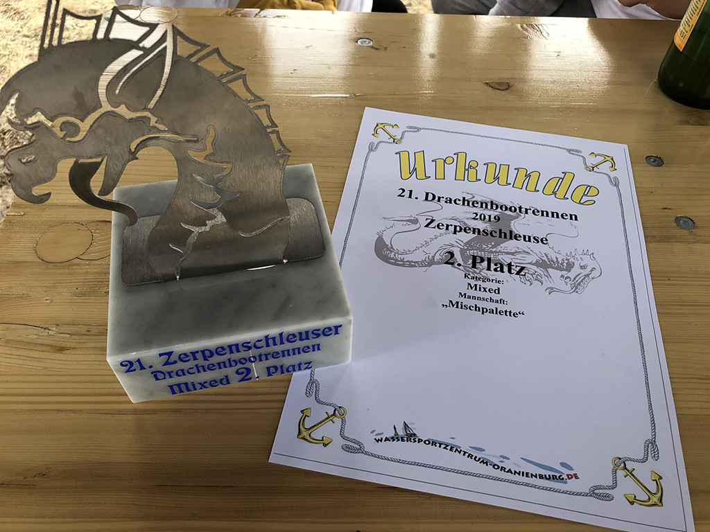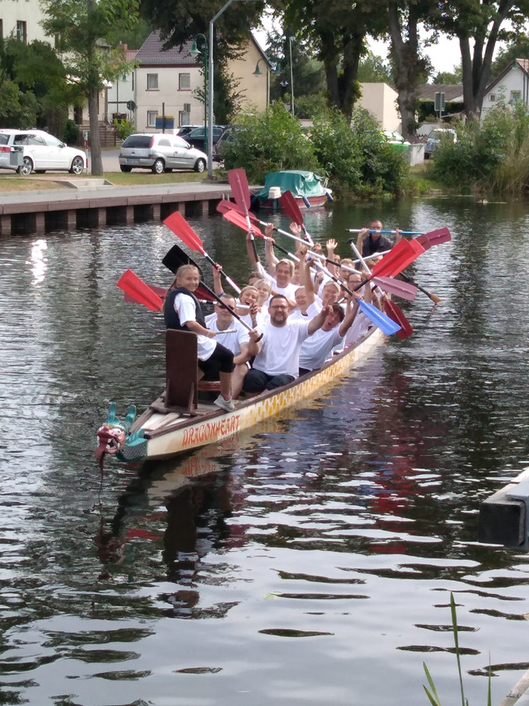 Um 10.00 Uhr ging das Drachenbootrennen los, nachdem alle 16 Mannschaften 3 Mal auf dem Wasser waren, gab es 16.30 Uhr die große Auswertung. Das Ergebnis UNFASSBAR – zum ersten Mal an den Start als „Mischpalette“ holten wir dann den 2. Platz in der Kategorie „Mixed“ von 9 Mannschaften. LehrerInnen, Eltern und ErzieherInnen waren sich einig – nächstes Jahr sind wir wieder dabei. Zusätzlich wollen Schule und Hort ein Kinderboot an den Start bringen. Die Aktion war eine super Maßnahme und hat das Verhältnis zwischen der Kleinen Grundschule in Trägerschaft der Gemeinde Schorfheide und der Kita „Borstel“ in Trägerschaft der Johanniter-Unfall-Hilfe weiterhin positiv gestärkt.