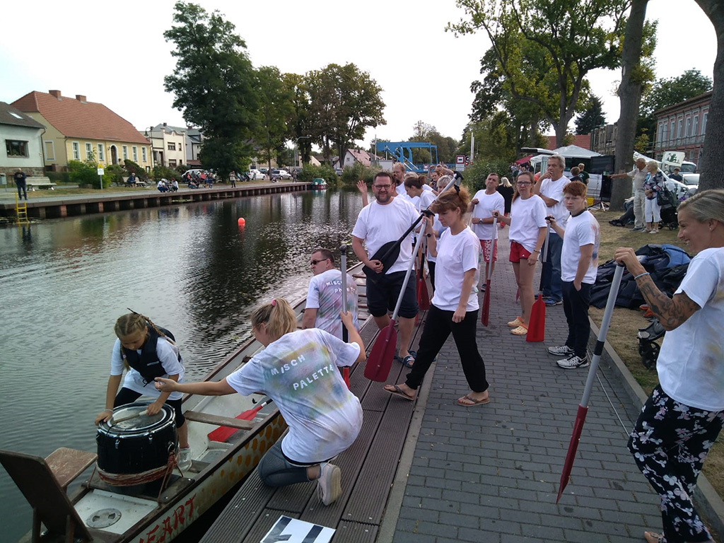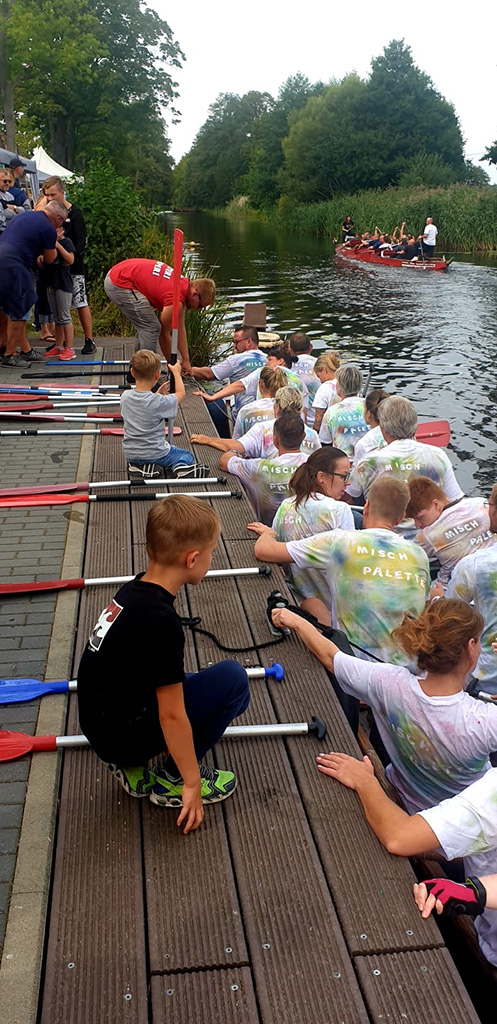 am Samstag war es soweit, Team „MISCHPALETTE“ ist beim Zerpenschleuser Drachenbootrennen zum ersten Mal an den Start gegangen. Der Name war Programm – Team „MISCHPALETTE“ – LehrerInnen der Kleinen Grundschule Groß Schönebeck, ErzieherInnen (inkl. Ehrenamtler und Sprachfachkraft) der Kita „Borstel“ und Eltern beider Einrichtungen haben sich der Herausforderung gestellt. Die Woche zuvor wurde 3 Mal auf dem langen Trödel hart geübt.