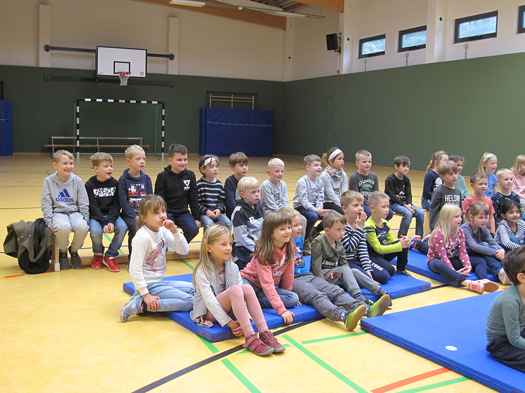 Am 22.09.2021 nahmen unsere 1.und 2. Klasse an einer Theaterveranstaltung in unserer Turnhalle teil.