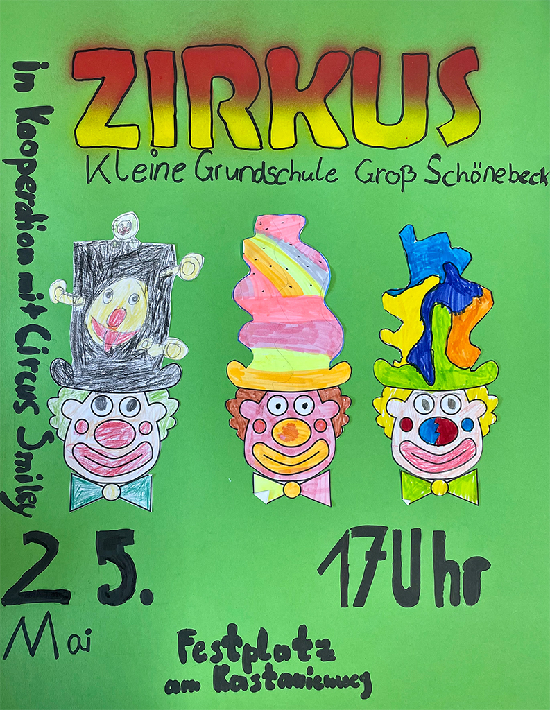 An der Kleinen Grundschule Groß Schönebeck im Barnim fand vom 23. bis 25. Mai die Zirkusprojektwoche mit dem Circus Smiley statt.